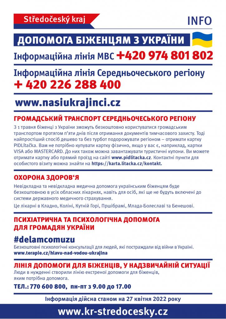 Infolinky, doprava, zdravotní péčeHumanit.dávka, trh práce, bankovní účetKrajská asistenční centraInfolinky, doprava, zdravotní péče- UA verzeHumanit.dávka, trh práce, bankovní účet - UA verzeKrajská asistenční centra - UA verze